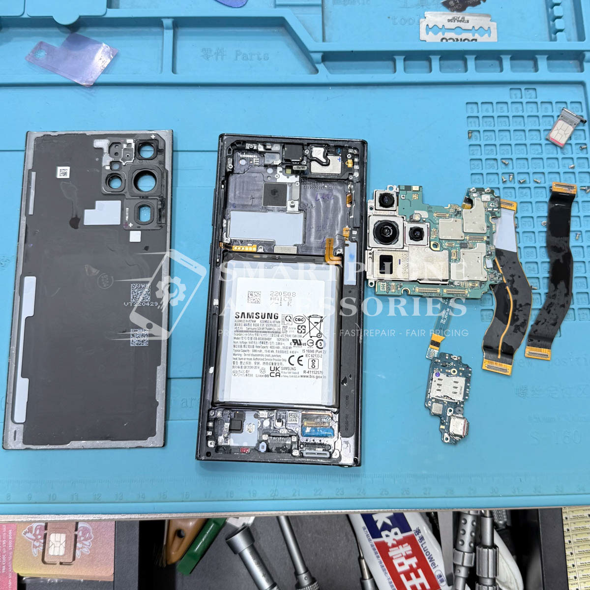 The Samsung Water Exposure Drying service follows a structured inspection-first workflow: