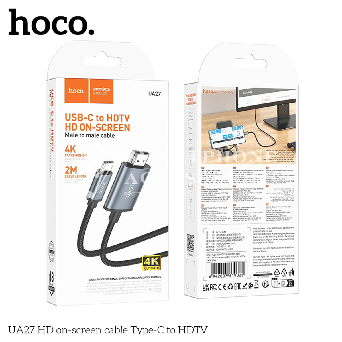 The Type C to HDMI 4K Converter Cable enables laptops, tablets, and smartphones with a Type-C port to connect directly to HDMI displays.